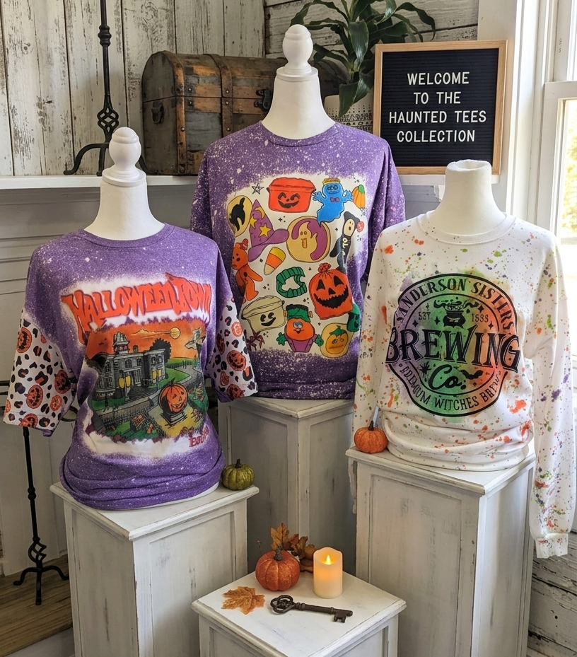90s Kids Halloween Bleached Tee | Beanie Baby Throwback Haunted Shirt