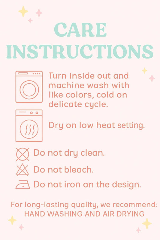 - Do not iron directly on the design.